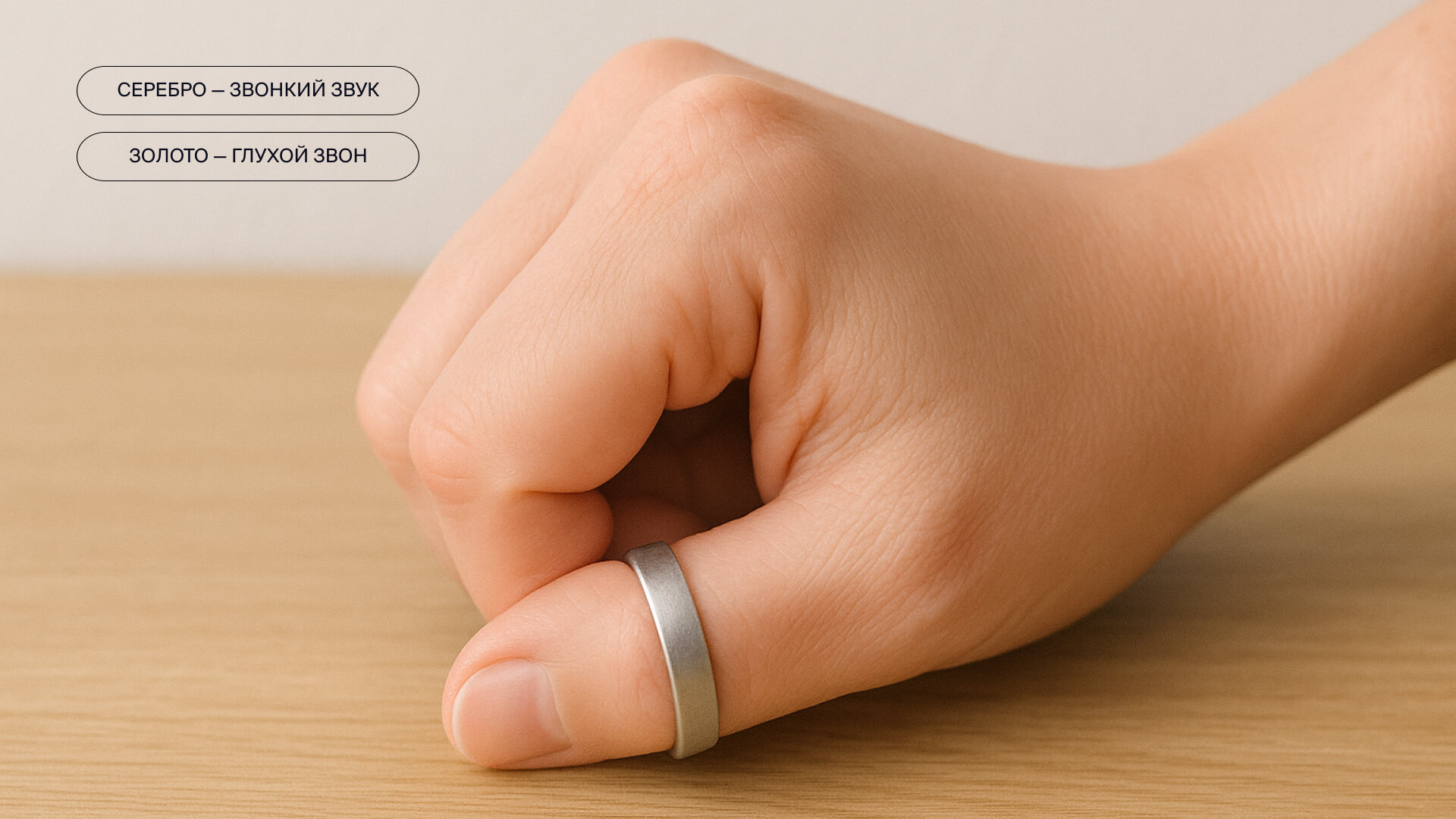 Проверка звуком — необычный, но эффективный способ отличить белое золото от серебра. Если аккуратно постучать украшением по деревянной поверхности, можно услышать характерный звон.