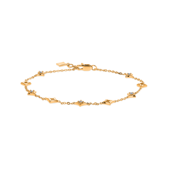 Браслет с натуральными бриллиантами огранок Круглый, общим весом 0.05 карат, выполнен из желтого золота 585 пробы. Браслет можно комбинировать с другими ювелирными украшениями. Сочетайте модель с под...