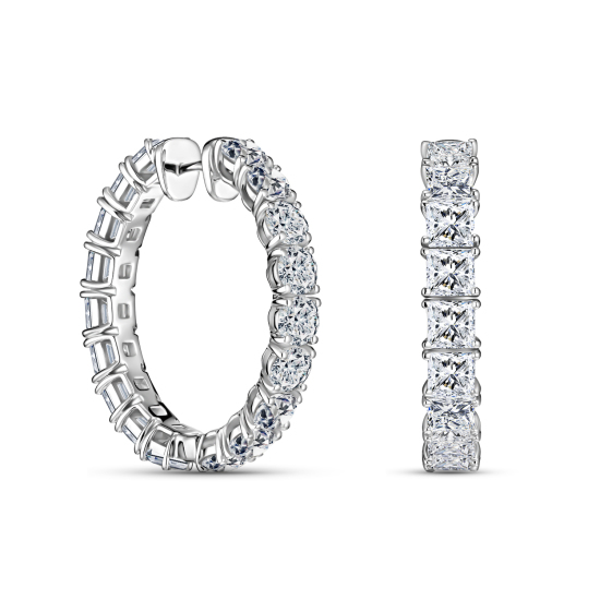 Роскошные серьги с натуральными бриллиантами огранок Круглый/Принцесса, общим весом 9.86 карат, выполнены из белого золота 750 пробы. Серьги можно комбинировать с другими ювелирными украшениями. Сочет...