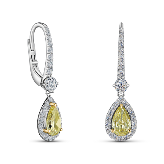 Роскошные серьги с натуральными бриллиантами огранок Груша/Круглый, общим весом 1.63 карат, выполнены из белого/желтого золота 750 пробы. Серьги можно комбинировать с другими ювелирными украшениями. С...