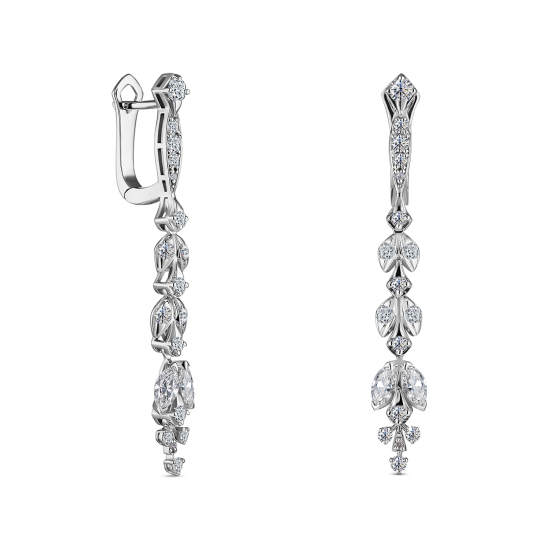 Роскошные серьги с натуральными бриллиантами огранок Круглый/Маркиз, общим весом 2.24 карат, выполнены из белого золота 585 пробы. Серьги можно комбинировать с другими ювелирными украшениями. Сочетайт...