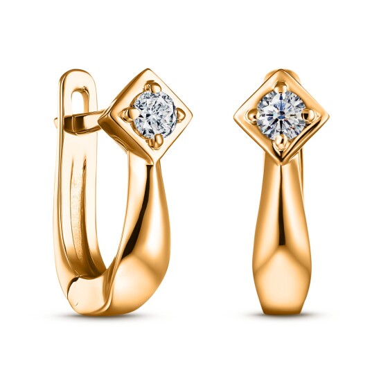 Роскошные серьги с натуральными бриллиантами огранок Круглый, общим весом 0.14 карат, выполнены из красного золота 585 пробы. Серьги можно комбинировать с другими ювелирными украшениями. Сочетайте мод...