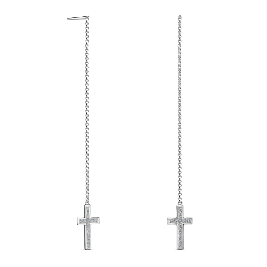 Роскошные серьги с натуральными бриллиантами огранок Круглый, общим весом 0.09 карат, выполнены из белого золота 585 пробы. Серьги можно комбинировать с другими ювелирными украшениями. Сочетайте модел...