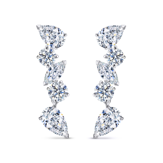 Роскошные серьги с натуральными бриллиантами огранок Груша/Круглый/Маркиз, общим весом 6.55 карат, выполнены из белого золота 750 пробы. Серьги можно комбинировать с другими ювелирными украшениями. Со...