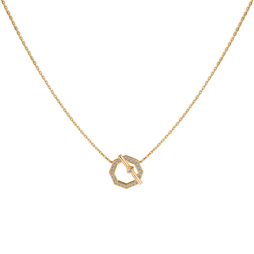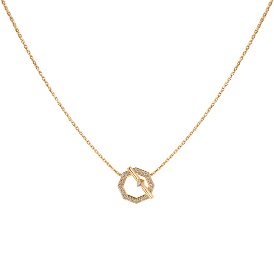 Колье с натуральными бриллиантами огранок Круглый, общим весом 0.18 карат, выполнено из желтого золота 585 пробы. Роскошное колье можно комбинировать с другими украшениями. Сочетайте модель с акцентн...