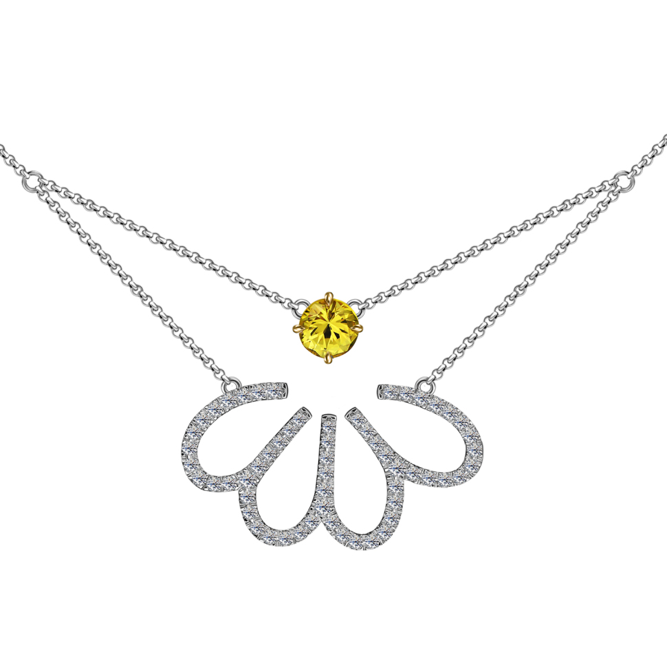 Колье с натуральными бриллиантами огранок Круглый, общим весом 0.95 карат, выполнено из белого/желтого золота 585 пробы. Ювелирное украшение дополняет подлинный драгоценный камень Сапфир цветной, вес...