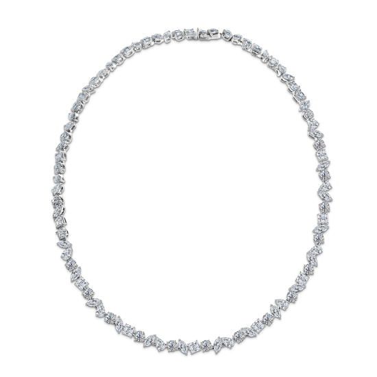 Колье с натуральными бриллиантами огранок Груша/Ашер/Круглый/Маркиз, общим весом 33.77 карат, выполнено из белого золота 750 пробы. Модель доступна в размере 42. Роскошное колье можно комбинировать с ...