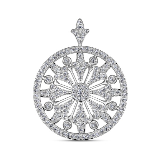 Подвеска с натуральными бриллиантами огранок Круглый, общим весом 0.80 карат, выполнена из белого золота 585 пробы. Подвеску можно носить на цепочке и комбинировать с другими ювелирными украшениями. С...