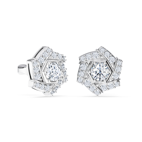 Изящные пусеты с натуральными бриллиантами огранок Круглый, общим весом 0.97 карат, выполнены из белого золота 750 пробы. Пусеты можно комбинировать с другими ювелирными украшениями из коллекции. Соче...