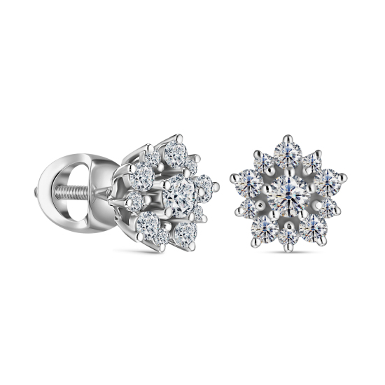 Изящные пусеты с натуральными бриллиантами огранок Круглый, общим весом 0.42 карат, выполнены из белого золота 585 пробы. Пусеты можно комбинировать с другими ювелирными украшениями из коллекции. Соче...