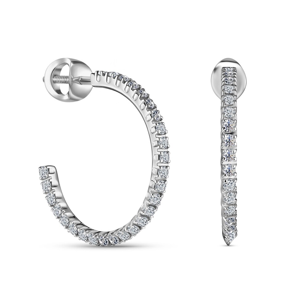 Изящные пусеты с натуральными бриллиантами огранок Круглый, общим весом 0.60 карат, выполнены из белого золота 585 пробы. Пусеты можно комбинировать с другими ювелирными украшениями из коллекции. Соче...