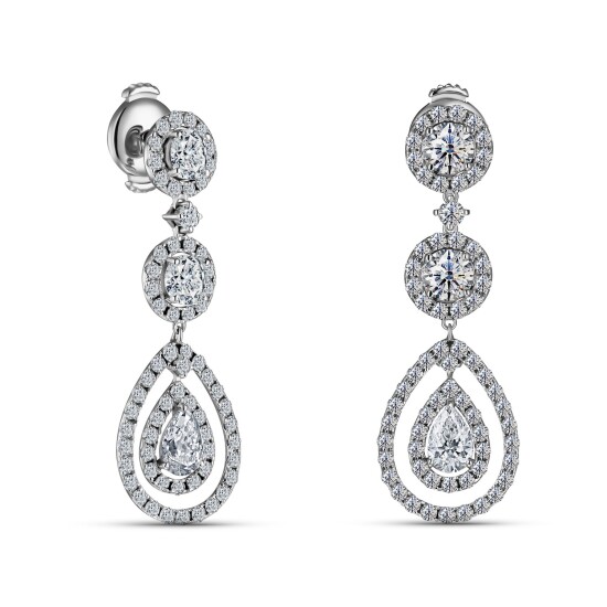 Изящные пусеты с натуральными бриллиантами огранок Груша/Круглый, общим весом 3.23 карат, выполнены из белого золота 750 пробы. Пусеты можно комбинировать с другими ювелирными украшениями из коллекции...