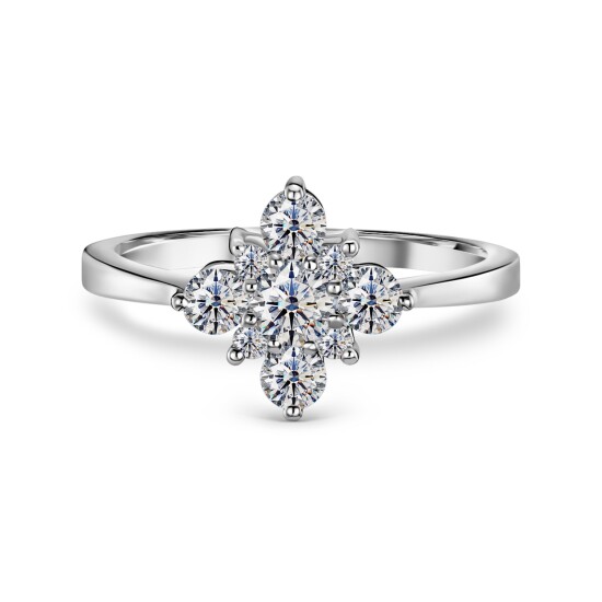 Элегантное кольцо с натуральными бриллиантами огранок Круглый, общим весом 0.55 карат, выполнено из белого золота 585 пробы. Модель доступна в размере 15.5. Кольцо можно комбинировать с другими ювелир...