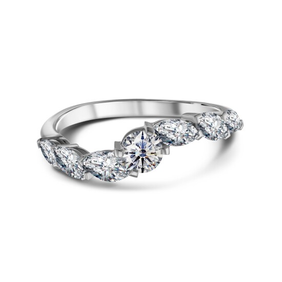 Элегантное кольцо с натуральными бриллиантами огранок Круглый/Маркиз, общим весом 0.87 карат, выполнено из белого золота 585 пробы. Модель доступна в размере 17. Кольцо можно комбинировать с другими ю...