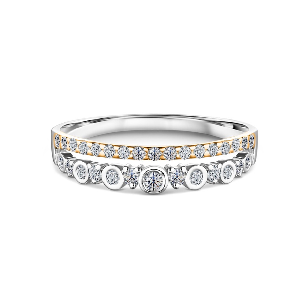 Элегантное кольцо с натуральными бриллиантами огранок Круглый, общим весом 0.26 карат, выполнено из белого/красного золота 585 пробы. Кольцо можно комбинировать с другими ювелирными украшениями с бри...