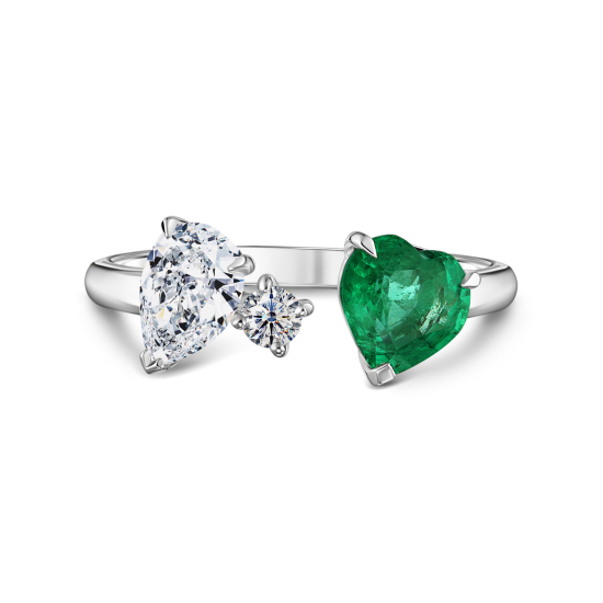 Элегантное кольцо с натуральными бриллиантами огранок Груша/Круглый, общим весом 1.61 карат, выполнено из белого золота 750 пробы. Ювелирное украшение дополняет подлинный драгоценный камень Изумруд, ...